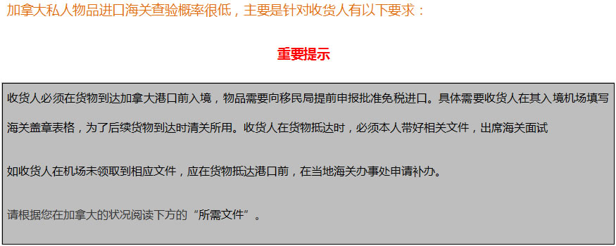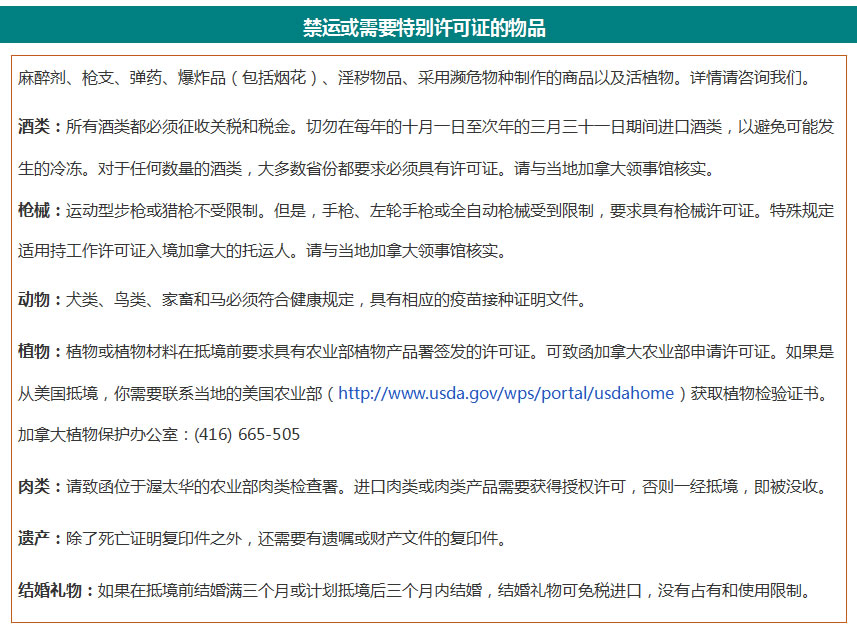 重要:本信息仅用作一般指南。对于任何错误、遗漏或使用该信息可能发生的任何损失或损害,上海诚翔国际货物运输有限公司概不承担任何责任。因此,建议在进口之前联系最近的加拿大海关办公室,以获取完整和最新的信息。